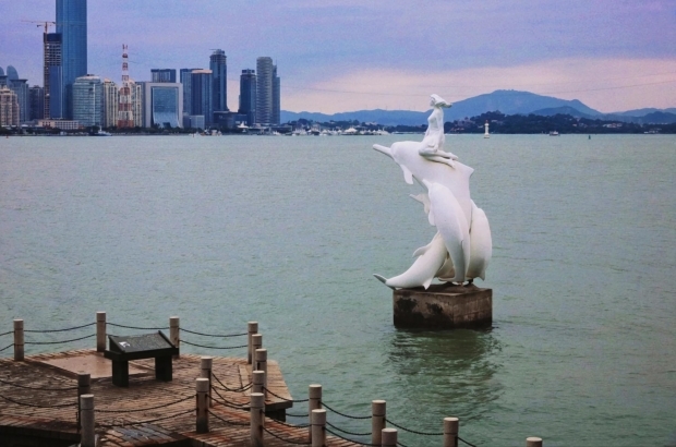 海豚救渔姑雕塑,诉说着美好的故事